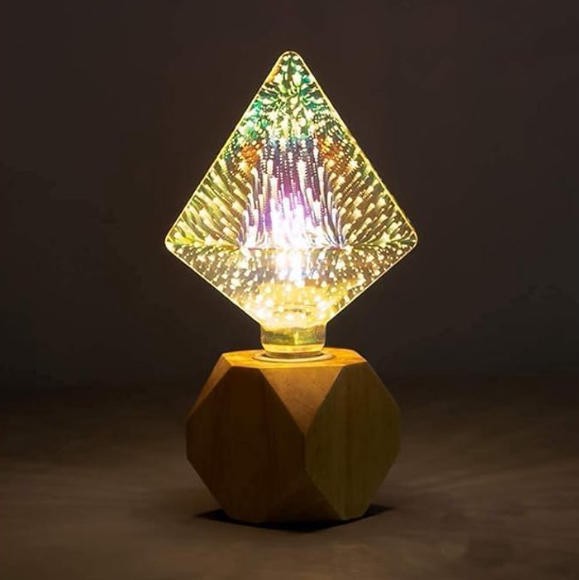 Specialty Decorative light bulb uses only 3W; rated to provide up to 10, 000 hours; Low heat; non-dimmable; instant full brightness; suitable to damp locations; mercury Free; Perfect for celebrating holidays and romantic events or bring a certain feel to your business's location. Add a splash of color to a patio, party, bedroom, or any situation with the Prism 3D fireworks lights; Firework bulb fits a standard light socket and does not need to be charged