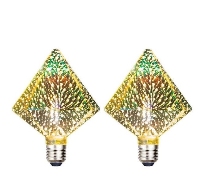 The Diamond firework lightbulb has a vintage style shape with the added festiveness of firework bolts of color;