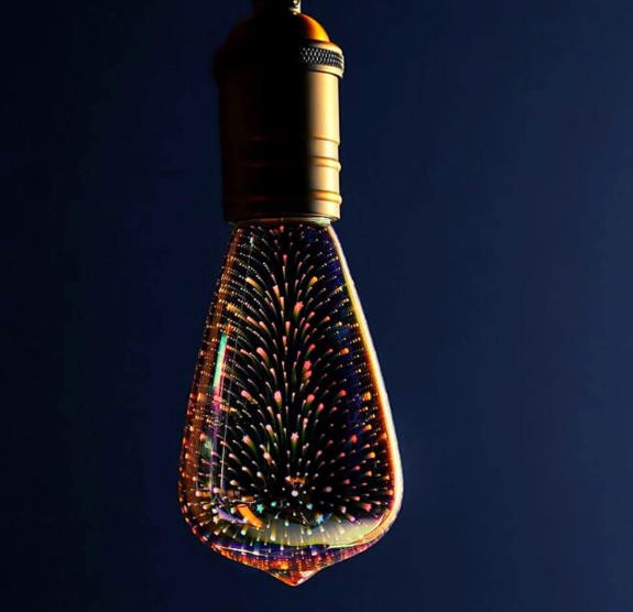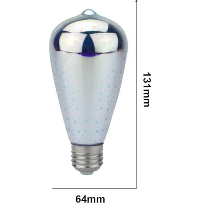 Unique 3D fireworks design: 3D fireworks glass, creative modern style, light bulb lighting like fireworks effect, or starry sky. Ideal for decorating homes, bars, cafes, bookstores, parties, weddings, etc. Long Life:Standard E27 Medium Screw Base, More than 25,000 hours of life, you don't need to change the bulb for quite a long time. Lighted by LEDs, long life, low heat and power consumption PREMIUM QUALITY, ECO-FRIENDLY: No harmful elements like mercury, lead, etc. Protect envi