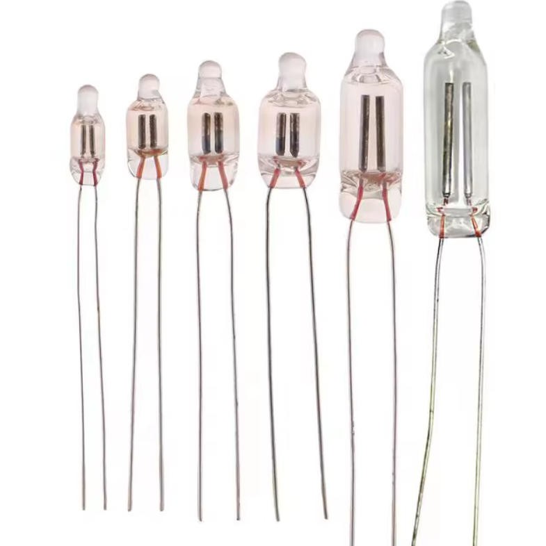 Pioneering Small light bulb manufacturer since 2006. The leads are made from a special material known as dumet which is a low resistance material consisting of a copper sheath around a nickel iron core constructed so that its expansion coefficient is the same as that of the glass used for the bulb. wire ends, 110/220V, orange, clear cover Incandescent Miniature Automotive Light Bulb transparent miniature neon bulb Neon lamp Neon Gloeilamp, draadeinden, 110/220V, oranje, heldere behuizing