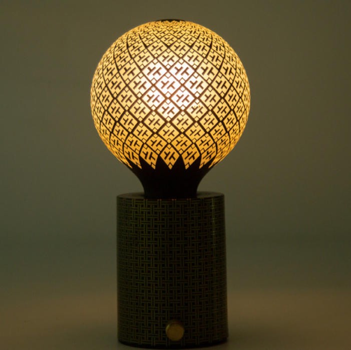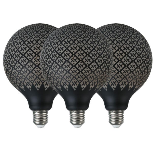 Creative decorative LED filament bulbs G125 with an E27 base and a black Greek pattern design