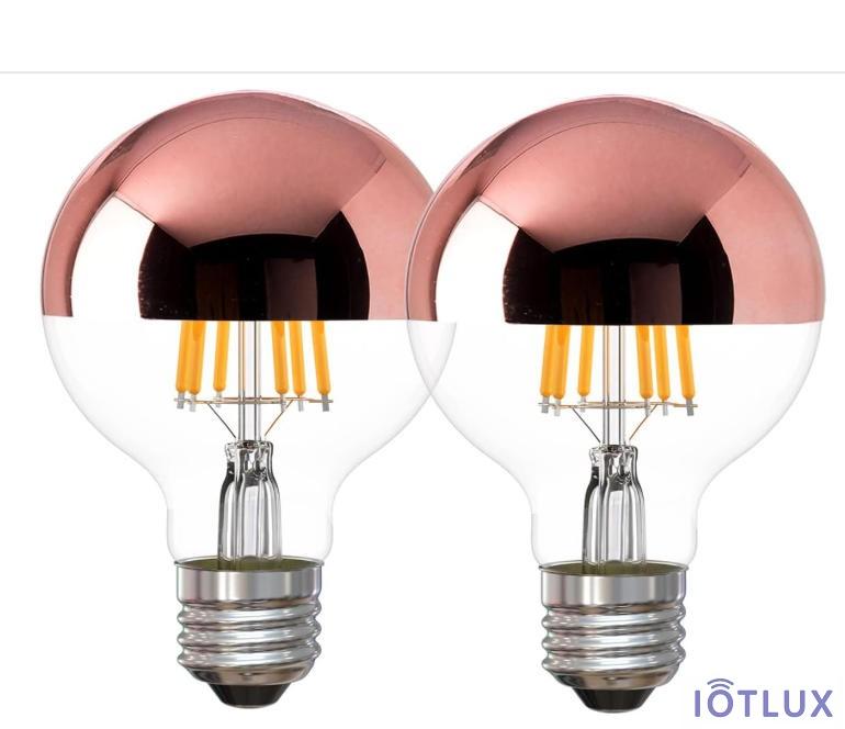 G25 E26 Globe Edison Filament bulb Rose Gold Tipped as mirror Dimmable 2700K Warm White Light Energy Efficient LED filament technology Competitive price + Factory direct OEM & ODM, Wholesale Energy saving, Compatible with E26/E27 sockets Low wattage, comfortable, flicker-free light.