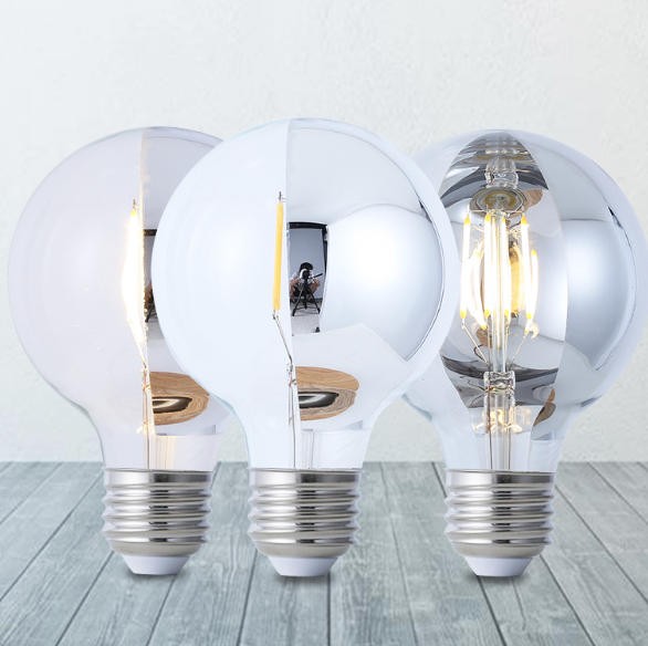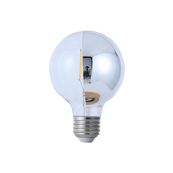 LED filament G95 globe light bulb with a crown mirror finish. The bulb features a crown mirror coating that provides indirect, glare-free, and decorative light. It uses modern LED technology, consuming 6 or 6.5 watts of power. The bulb provides a warm white light with a color temperature of 2700 Kelvin. It is dimmable and designed to fit a standard E26 / E27 socket Energy Efficient LED filament technology Competitive price + Factory direct OEM & ODM, Wholesale Low wattage, comforta