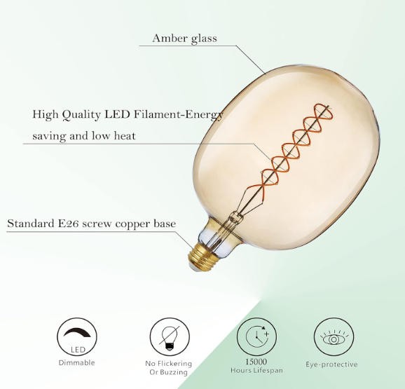 Oversized Vintage LED Giant Light Bulb Soft filament & energy consumption Competitive price + Factory direct OEM & ODM, Wholesale Energy saving, Compatible with E26/E27 sockets Art glass decorative, comfortable, flicker-free light.