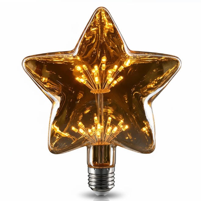 Vintage, Edison, and antique star light bulbs Featuring a unique DIP LED , this bulb creates a stunning 'starry night' or firework effect inside the glass. 2200K Warm White Light bulbs, flicker-free light Energy Efficient LED technology Competitive price + Factory direct OEM & ODM, Wholesale Energy saving, Compatible with E26/E27 sockets it delivers a warm, decorative glow perfect for homes, bars, and parties. Export to North America (USA, Mexico), Europe, Australia, and Brazil.