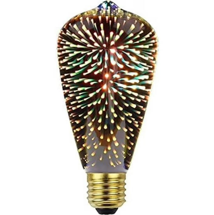 Unique 3D fireworks design: 3D fireworks glass, creative modern style, light bulb lighting like fireworks effect, or starry sky. Ideal for decorating homes, bars, cafes, bookstores, parties, weddings, etc. Long Life:Standard E27 Medium Screw Base, More than 25,000 hours of life, you don't need to change the bulb for quite a long time. Lighted by LEDs, long life, low heat and power consumption PREMIUM QUALITY, ECO-FRIENDLY: No harmful elements like mercury, lead, etc. Protect envi