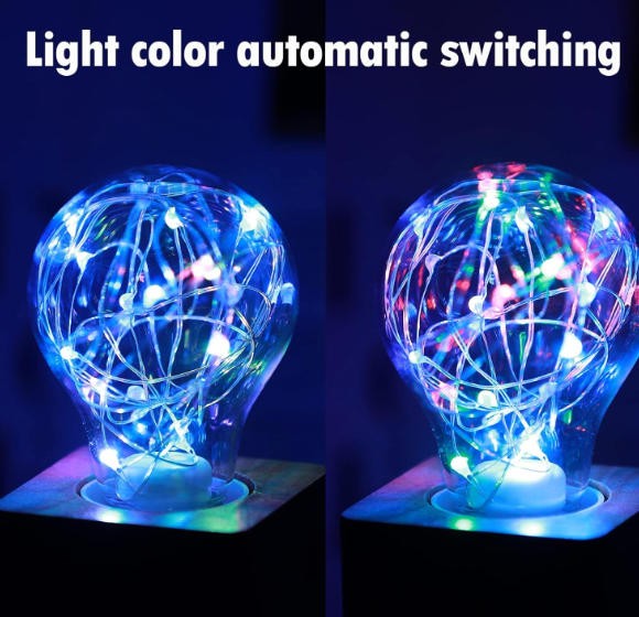 RGB Fairy light bulb uses only 2W; rated to provide up to 10, 000 hours; Low heat; non-dimmable; instant full brightness; suitable to damp locations; mercury Free; Perfect for celebrating holidays and romantic events or bring a certain feel to your business's location.