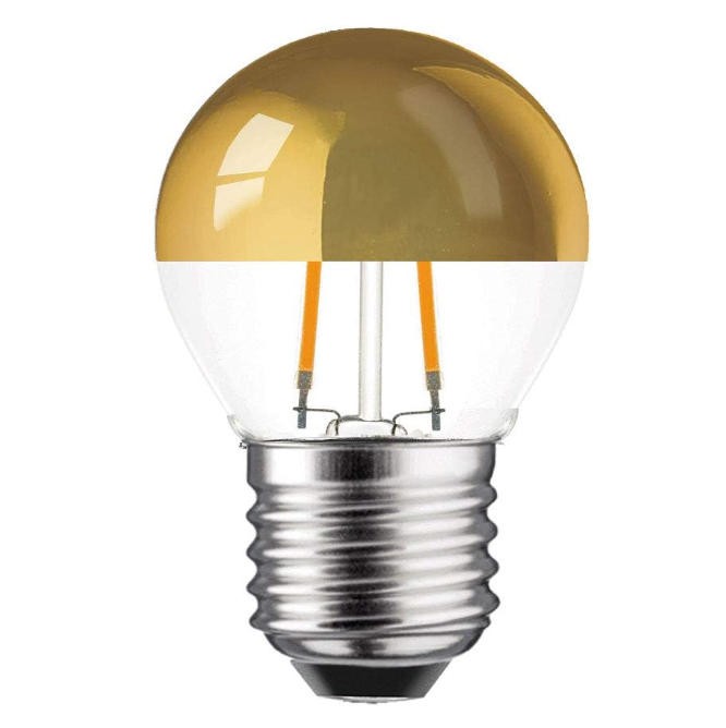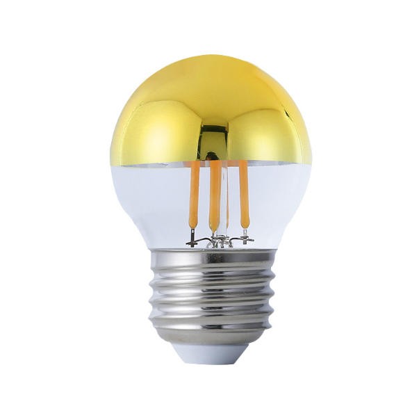 Classic Edison Golfball LED Gold light bulb The half chrome gold coating design 2700K Warm White Light Energy Efficient LED filament technology Competitive price + Factory direct OEM & ODM, Wholesale Energy saving, Compatible with E26/E27 sockets Low wattage, comfortable, flicker-free light.