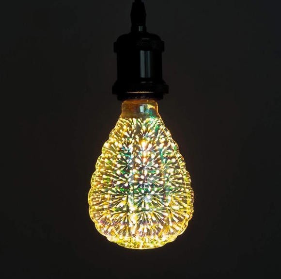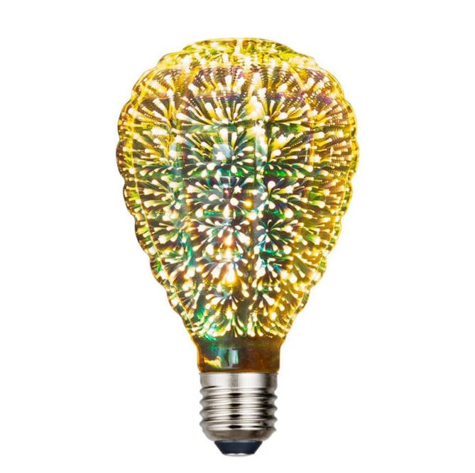 Hot air balloon Decorative light bulb uses only 3W; rated to provide up to 10, 000 hours; Low heat; non-dimmable; instant full brightness; suitable to damp locations; mercury Free; Perfect for celebrating holidays and romantic events or bring a certain feel to your business's location. Add a splash of color to a patio, party, bedroom, or any situation with the Prism 3D fireworks lights;