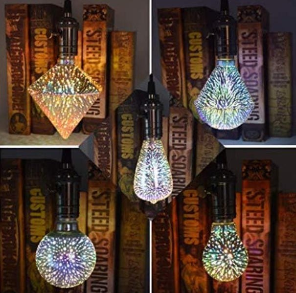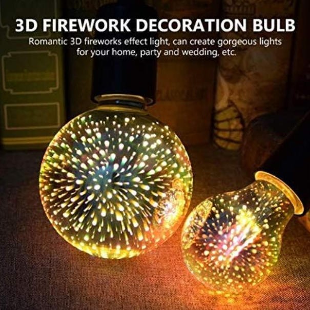 Decorative light bulb uses only 2W; rated to provide up to 10, 000 hours; Low heat; non-dimmable; instant full brightness; suitable to damp locations; mercury Free; Perfect for celebrating holidays and romantic events or bring a certain feel to your business's location. Add a splash of color to a patio, party, bedroom, or any situation with the Prism 3D fireworks lights; Firework bulb fits a standard light socket and does not need to be charged